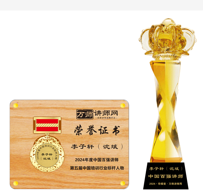恭喜李子軒(沈斌)獲萬(wàn)師講師網(wǎng)2024年度中國(guó)百?gòu)?qiáng)講師 暨第五屆中國(guó)培訓(xùn)行業(yè)標(biāo)桿人物